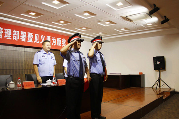 8月12日,南通市崇川公安分局在萬濠華府舉行了青奧會(huì)期間保安員教育管理部署會(huì)暨見義勇為頒獎(jiǎng)儀式,會(huì)議由崇川公安局大隊(duì)長趙峰主持,轄區(qū)各派出所所長、保安公司負(fù)責(zé)人、一二級(jí)物業(yè)服務(wù)企業(yè)負(fù)責(zé)人參加會(huì)議。