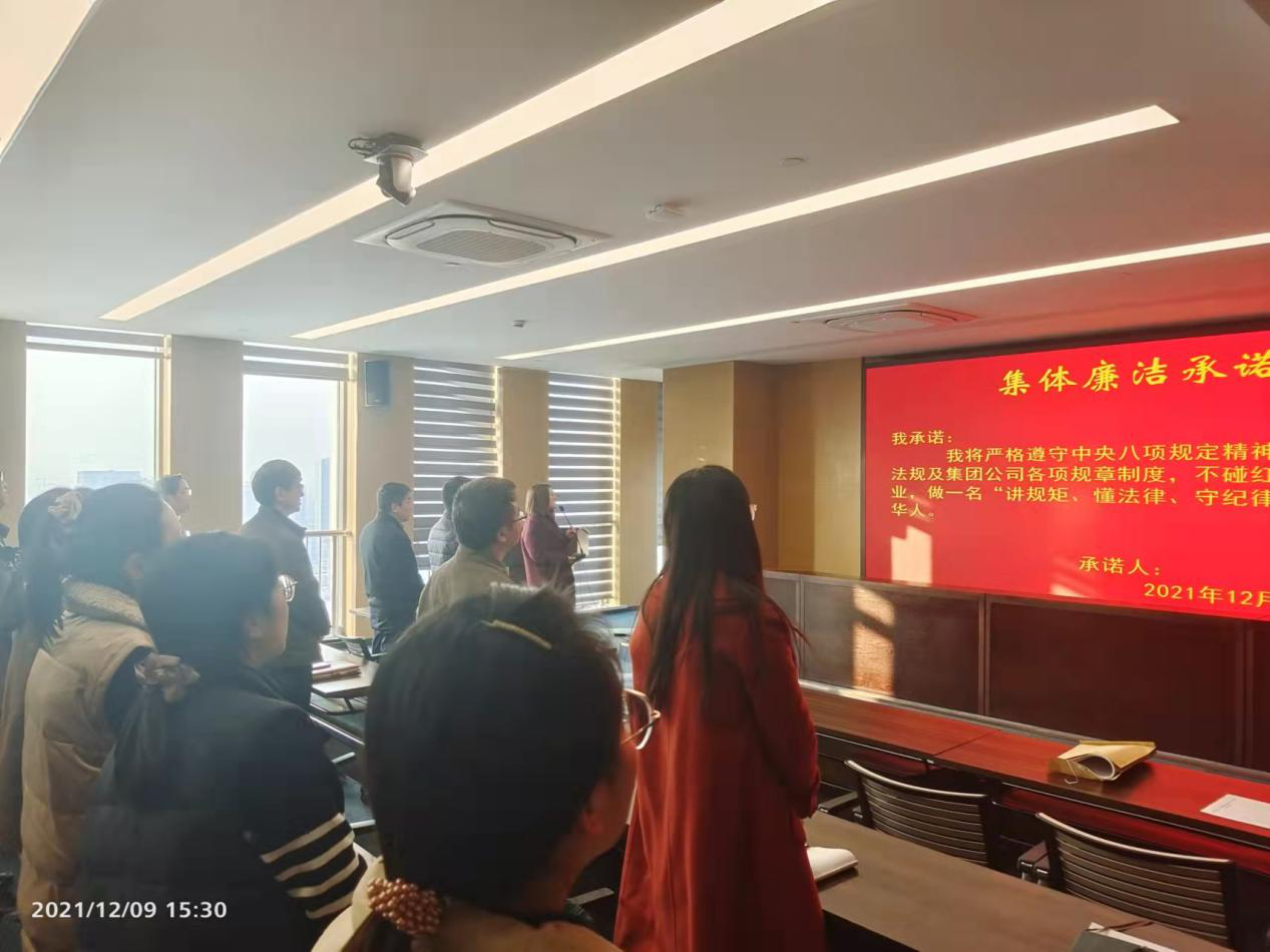 “我承諾:我將嚴格遵守中央八項規(guī)定精神,國家法律法規(guī)及集團公司各項規(guī)章制度,不碰紅線,廉潔從業(yè),做一名“講規(guī)矩、懂法律、守紀律”的合格精華人?!币痪渚溴P錚諾言,鏗鏘豪邁,在精華制藥集團股份有限公司大會議室內響徹天地!原來這是精華制藥集團黨委副書記、紀委書記、工會主席曹燕紅在領著大家一起開展集體廉潔承諾活動。