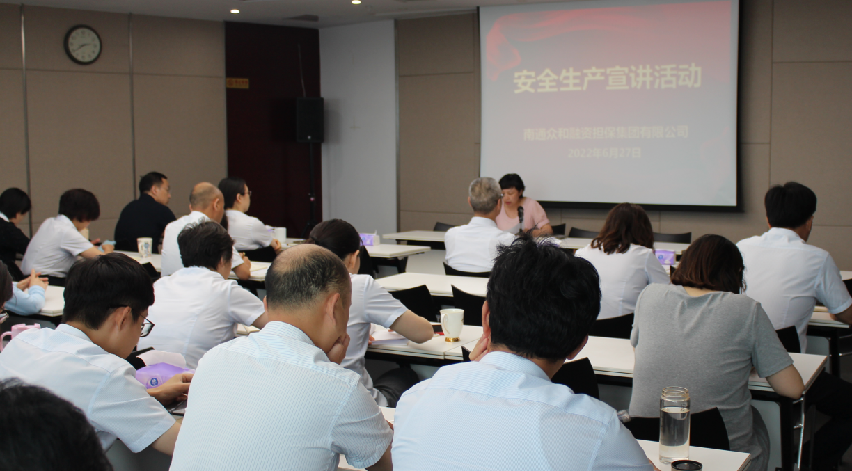 今年6月是全國第21個“安全生產(chǎn)月”,眾和擔(dān)保嚴格落實“安全生產(chǎn)月”工作要求,結(jié)合公司實際,細化完善活動方案,圍繞“遵守安全生產(chǎn)法,當好第一責(zé)任人”活動主題,扎實開展系列宣貫活動,推動安全生產(chǎn)各項工作走深走實。 6月27日下午,眾和擔(dān)保召開“安全生產(chǎn)月”宣講活動,公司全體員工及子公司領(lǐng)導(dǎo)班子成員共計40余人參加活動。會上,黨支部書記李瑾傳達了產(chǎn)控集團“安全生產(chǎn)月”專題工作會議精神,提出“提高思想認識、落實制度規(guī)定、切實擔(dān)起責(zé)任、實現(xiàn)兩個確保”的工作要求。