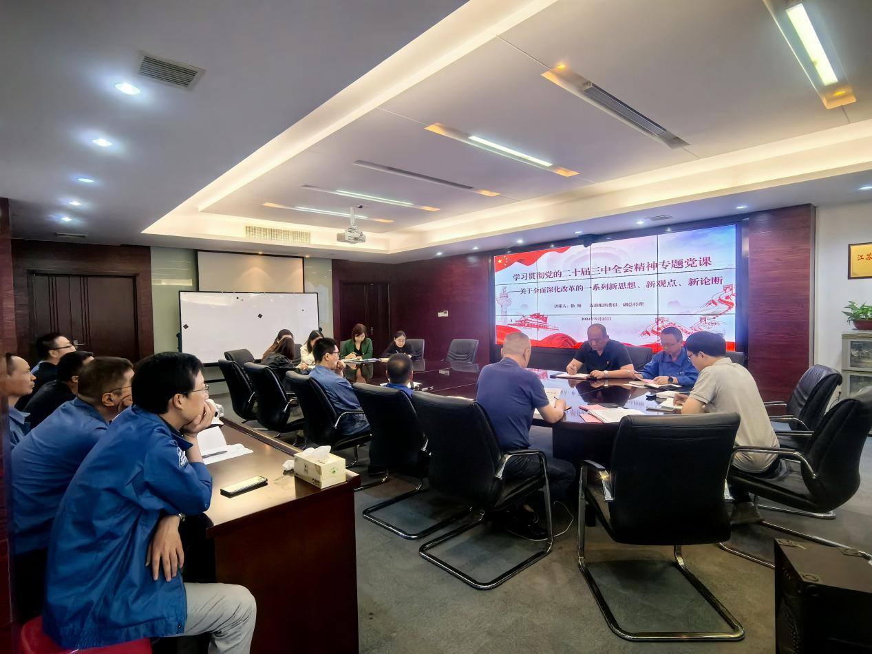 公司支部組織委員、副總經(jīng)理徐翔結(jié)合學習貫徹黨的二十屆三中全會精神的有關工作要求,為全體黨員講授了一堂題為《黨的二十屆三中全會中關于全面深化改革的一系列新思想、新觀點、新論斷》的專題黨課。黨課從十個方面深入淺出地解讀了關于黨中央全面推進深化改革的重大現(xiàn)實意義和深遠歷史意義。