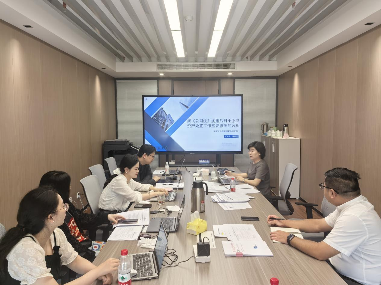 “AMC小課堂”首期課程圍繞“新《公司法》實施對不良資產(chǎn)處置工作的重大影響”進行解析,深入探討新法下公司治理結(jié)構(gòu)變化、股東權(quán)利義務(wù)調(diào)整、清算注銷規(guī)則更新等對債權(quán)追索、資產(chǎn)處置路徑帶來的深刻變革與應(yīng)對策略。公司全體人員參加本次課程培訓(xùn)。